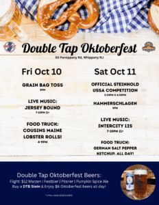 Whippany: Annie from Double Tap Brewing sent information about 2 days of Oktoberfest! scheduled for Friday, October 10 2025 from 12:00 pm to 11:00 pm. Annie says…