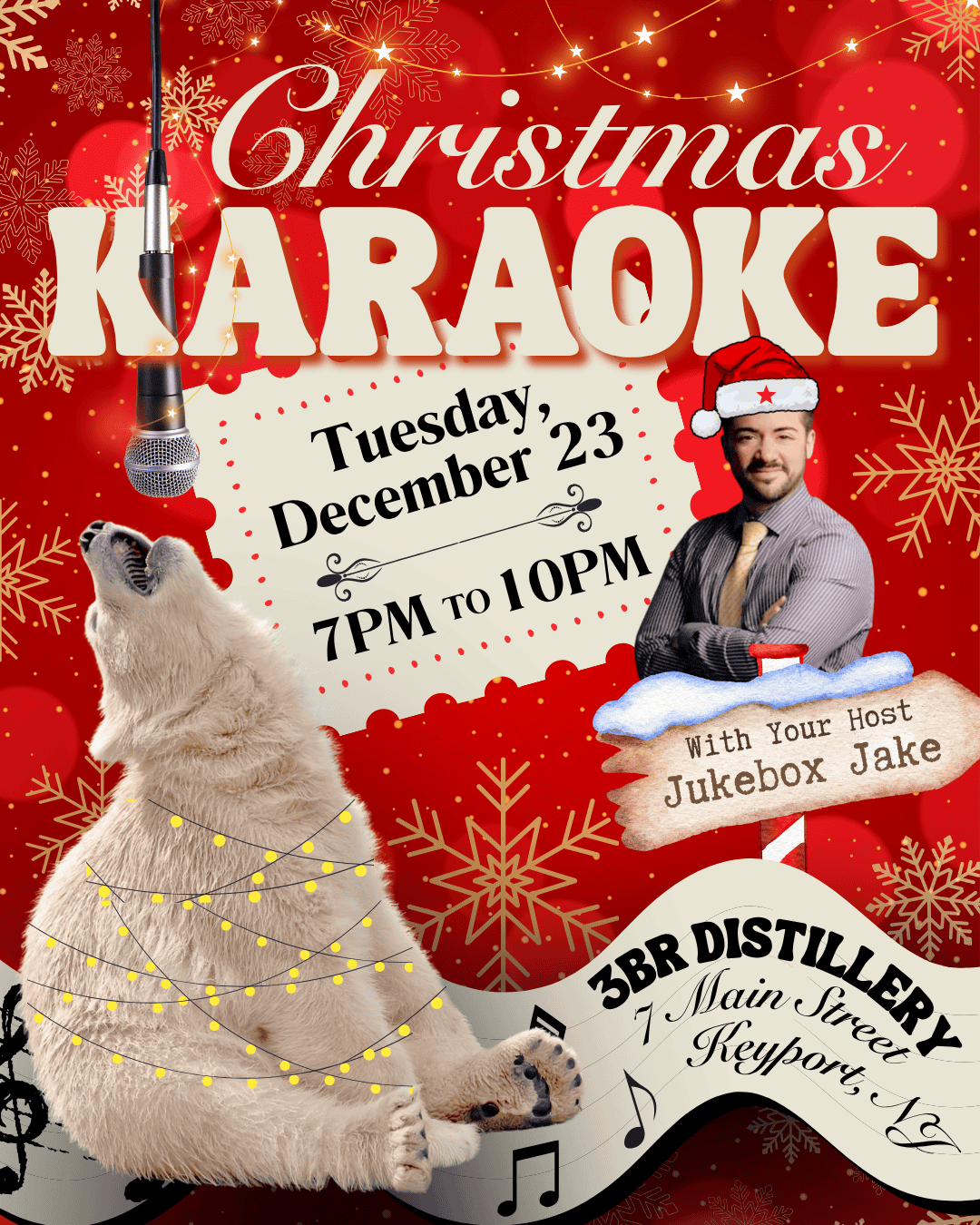 Keyport: Cassidy from 3BR Distillery sent information about Christmas Karaoke scheduled for Tuesday, December 23 2025 from 07:00 pm to 10:00 pm. Cassidy says…