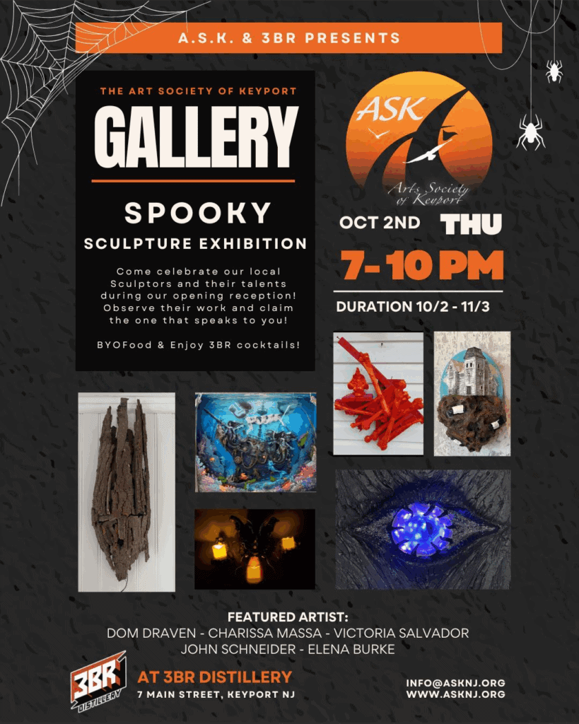 Keyport: Cassidy from 3BR Distillery sent information about Sculpture Exhibition! scheduled for Thursday, October 2 2025 from 07:00 pm to 10:00 pm. Cassidy says…