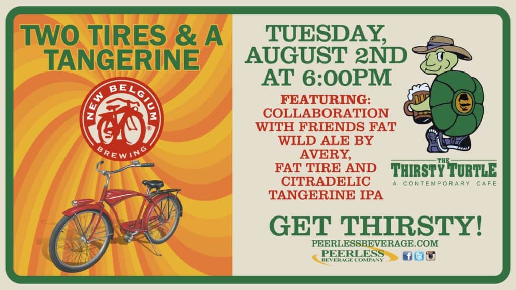 Cranford: Two Tires & A Tangerine is happening at Thirsty Turtle- Cranford Kevin from Thirsty Turtle- Cranford said on August 2 2016 from 06:00 pm to 09:00 pm As part of our 1st Tuesday of The Month Series, we will have three great brews from New Belgium this night. -New Belgium Fat Tire -New Belgium Fat Wild Avery Collab- Very rare! (http://www.newbelgium.com/beer/avery-fat-wild) -New Belgium Citradelic There are only a few kegs of the Fat Tire/ […]